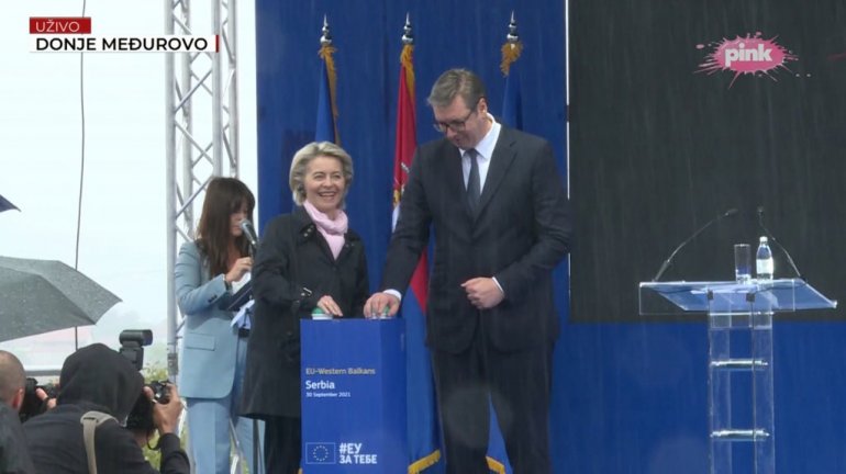 Након потписивања уговора између Јавног предузећа Коридори Србије и Конзорцијума СТРАБАГ АГ и СТРАБАГ д.о.о. Београд о изградњи прве фазе Ауто-пута мира на деоници Мерошина – Мерошина 1, Вучић и Урсула фон дер Лајен су притиском на дугме означили почетак радова на тој деоници.