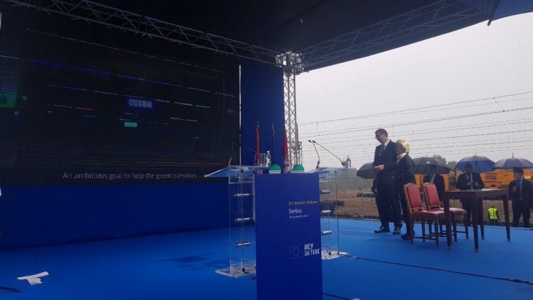 ПРЕДСЕДНИК Србије Александар Вучић и председница Европске комисије Урсула фон дер Лајен присуствују церемонији обележавања почетка радова на модернизацији и рехабилитацији пруге Ниш—Брестовац, на међународном железничком Коридору 10.