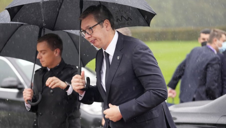 ПРЕДСЕДНИК Србије Александар Вучић стигао је јутрос око девет сати у Конгресни центар на Брду код Крања, где се одржава Самит Европска унија - Западни Балкан.