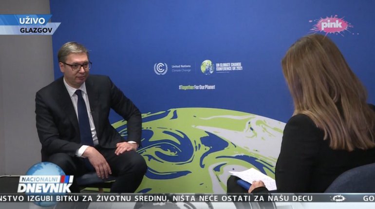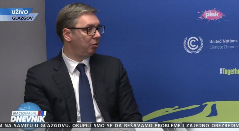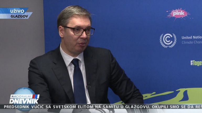 ПРЕДСЕДНИК Србије Александар Вучић укључио се данас из Глазгова и рекао за ТВ Пинк да га је најавила Новосађанка, а да се чак и "мало постидео".