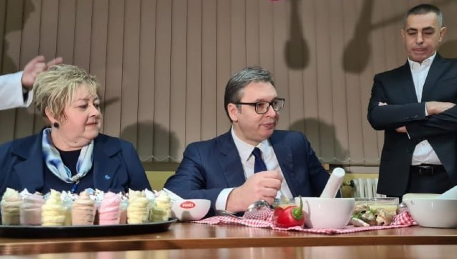 Председник је пробао супу са вргањима, а затим и супу са спанаћем.