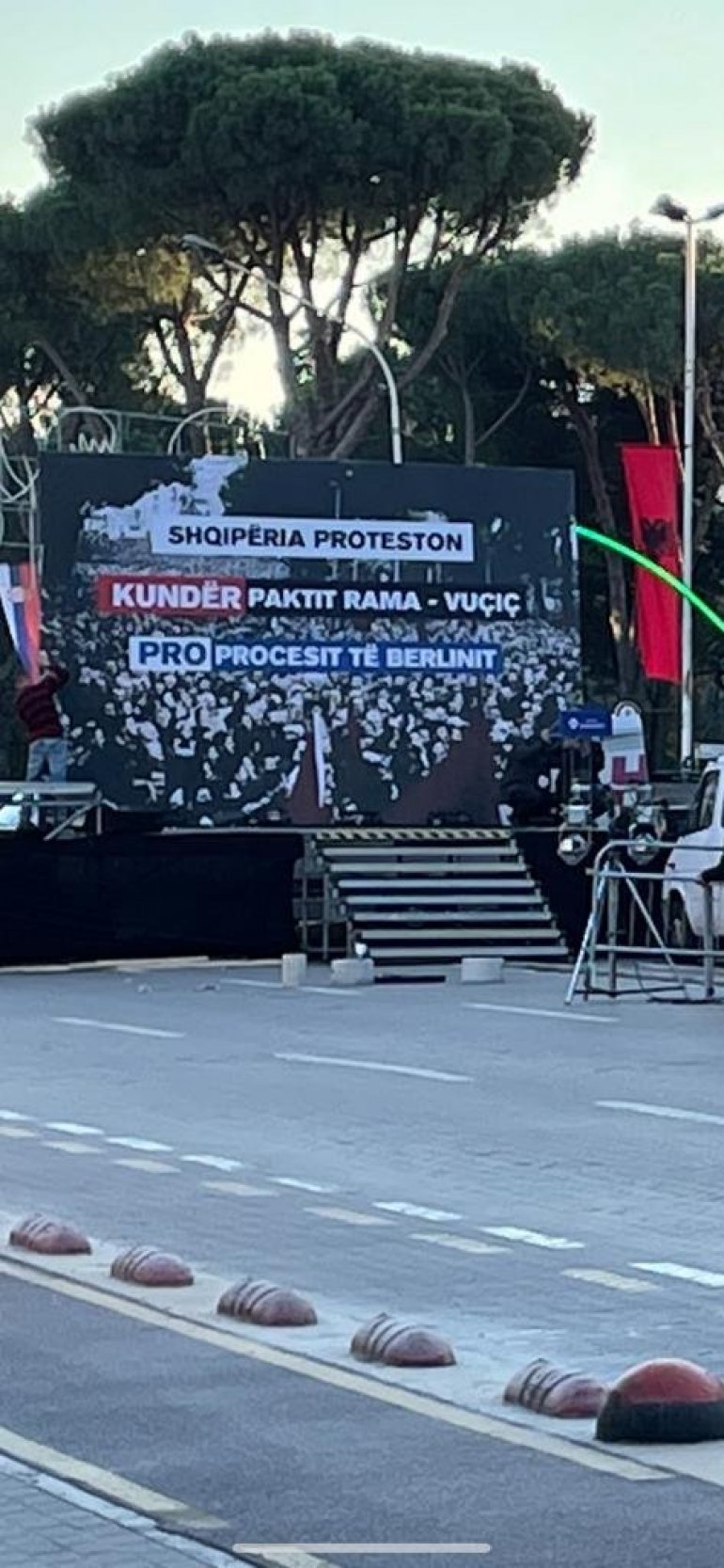 АЛБАНСКИ екстремисти, уз обилату помоћ политичара са Косова, спремили су протесте против председника Србије Александра Вучића, који борави у Тирани у оквиру иницијативе "Отворени Балкан". Они су монтирали и бину за демонстранте у центру Тиране - сазнају "Новости".