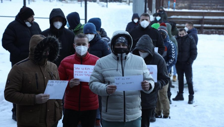 ДА ЗА СЛОБОДУ: Срби се окупили у К. Митровици, хоће да остваре право да гласају на референдуму