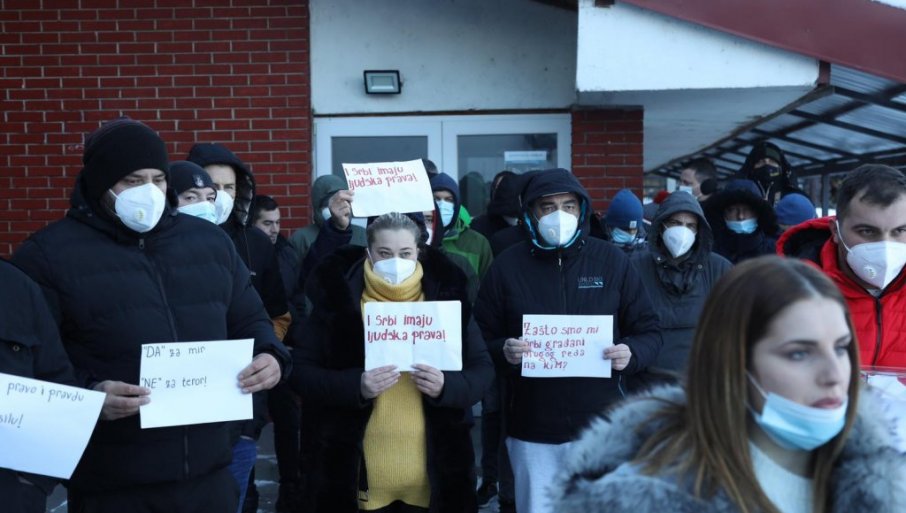 Они су, као и Срби у Косовској Митровици на протесту исказали своје огорчење одлуком Приштине и послали поруку да и Срби на КиМ имају људска права.