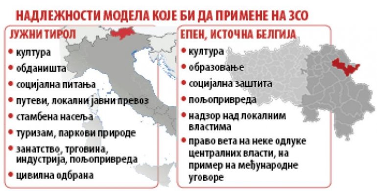 За српску страну прихватљиво је само оно што је договорено Бриселским споразум и не долазе у обзир било какви покушаји који би ЗСО претворили у празну љуштуру и свели на ниво невладине организације. Иако модели Јужног Тирола и источне Белгије подразумевају значајан степен аутономије, велико је питање да ли би новопонуђено решење било спроведено, имајући у виду да је ЗСО више од осам година на чекању, и поред тога што су за формирање Заједнице гарантовали и Вашингтон и Брисел.