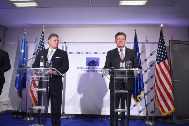ОБРАЋАЊЕ ЕСКОБАРА И ЛАЈЧАКА У БЕОГРАДУ: Конференција за новинаре представника ЕУ и САД (ВИДЕО)