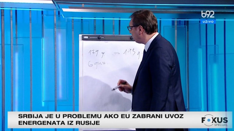- Пре неколико месеци људи су тражили на улицама да се одрекнемо угља, а данас сви у свету купују угаљ. У Колубари извлачимо око 62 хиљаде тона дневно. Треба нам 90 хиљада тона. Сада тражимо где да га купимо, да бисмо могли да имамо довољно струје. Купујемо и мазут, сналазимо се, али трошимо уштеђевину. Добро је да смо је сачували, да смо се понашали одговорно, али људи морају да виде да трошимо уштеђевину. Налазимо се у највећој светској кризи од 45. на овамо. Лако је седети и чекати да неко нешто уради. Када гледам изборне програме, не видите ништа осим да ће држава бесплатно и све да да. Али није могуће да тако држава постоји. То нема нигде. Ово су ствари које ће нама да праве проблеме. Ми добијамо 6 милиона кубних метара гаса готово за џабе. Ми га плаћамо 270 долара, за ових 6 милиона, а нама у марту треба 11 милиона. Са оним што смо успели да утиснемо, да не плаћамо ову цену од 4000 долара, повлачили смо из Банатског двора, јер смо по нижој цени утискивали, али и даље трошимо резерве. Не можемо да истиснемо колико нам је потребно и фали нам 0,5 макар, које морамо да купимо по тржишној цени. Све је јако компликовано, везано за све енергенте. Да не помињем да смо се мучили да пронађемо млеко у праху, и пронашли смо га, да бисмо имали све. Кад се борбе додатно распламсају, кад воз крене из Немачке, Русије, Америке, тај се воз не зауставља. Овоме нема краја. Ја разговарам са нашим пријатељима из окружења. Сва складишта гаса су празна, ми смо утиснули нешто у последњих месец дана - истиче председник.