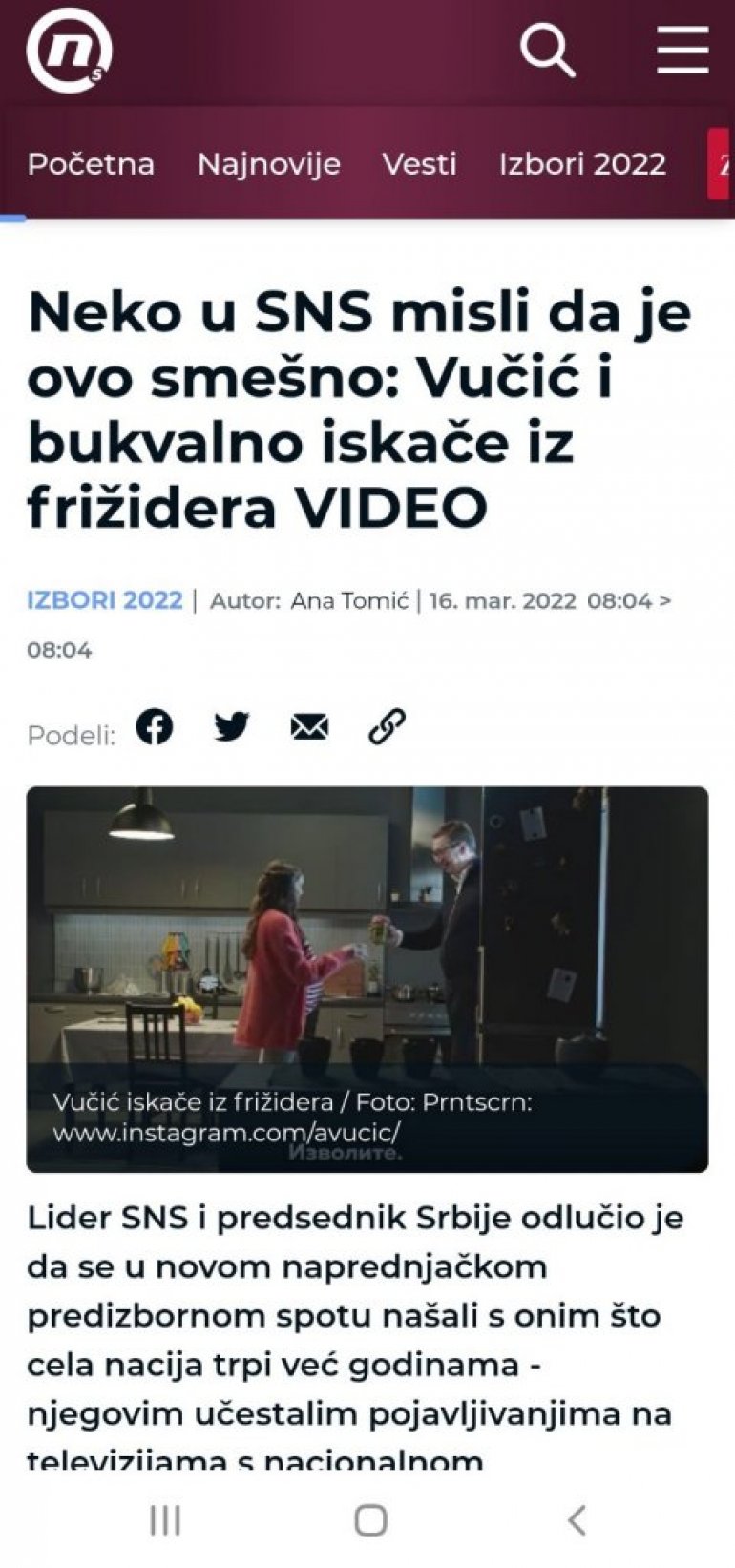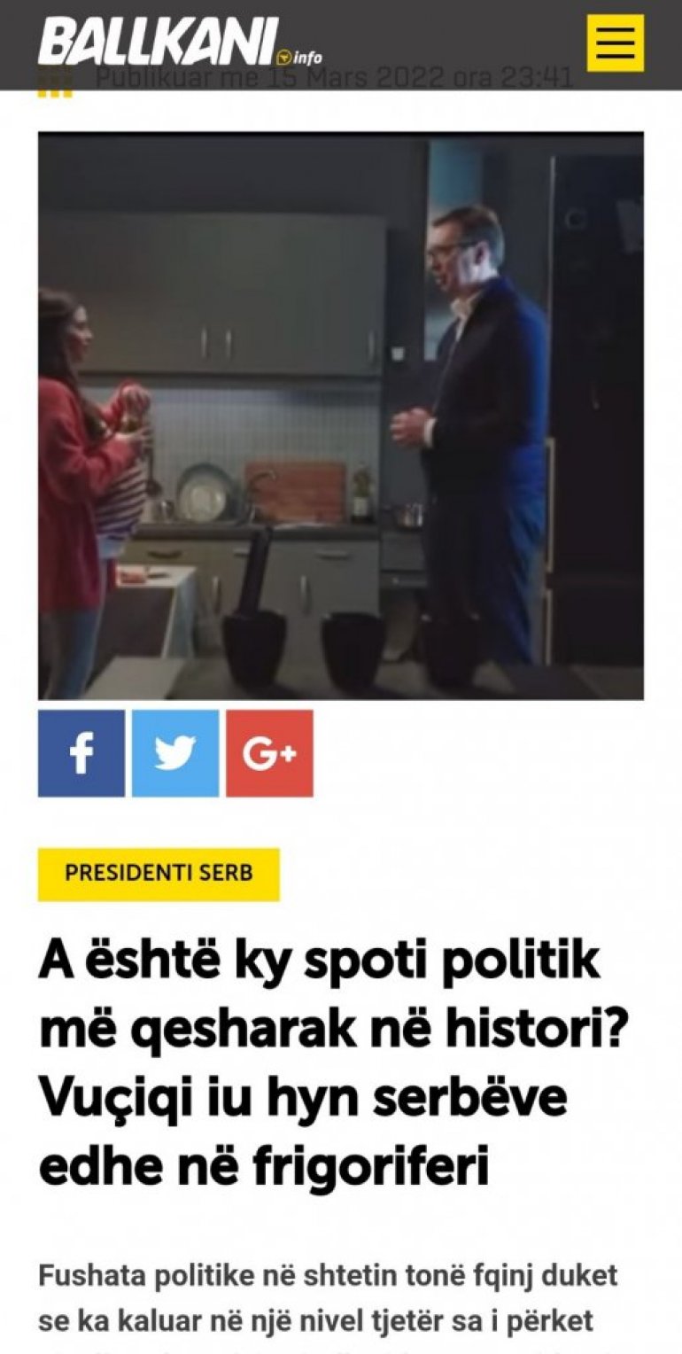 - Да ли је ово најсмешнији политички спот у историји? Вучић Србима улази и у фрижидере - пишу албански медији.
