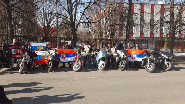 ПРЕДСТАВНИЦИ руског мото-клуба "Ноћни вукови" су испред амбасаде Србије у Москви одали пошту жртвама НАТО агресије на СР Југославију.