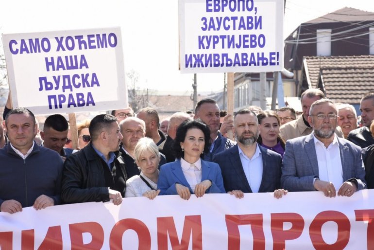 Наши сународници носе пароле "Миром против Куртијевог насиља", позивају Европу да заустави иживљавање Албанаца, уз поруке да Срби са КиМ верују само председнику Вучићу.