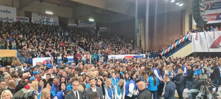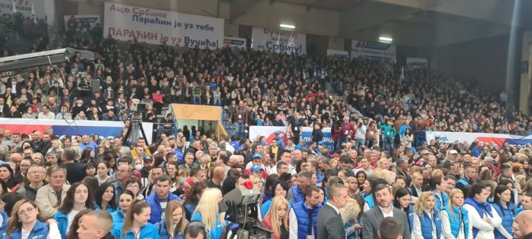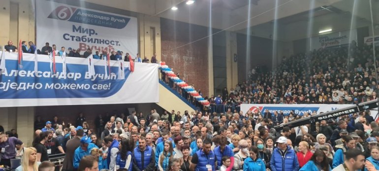 Грађани су се окупили у хали како би пружили подршку председничкој кандидатури Александра Вучића и листу "Заједно можемо све - Александар Вучић".