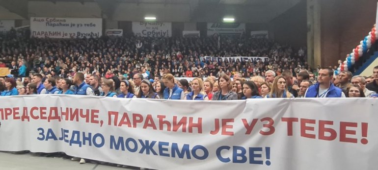 ПРЕДСЕДНИК Александар Вучић обратио се вечерас грађанима у Параћину, који су га у великом броју дочекали у спортском центру "7. јули".
