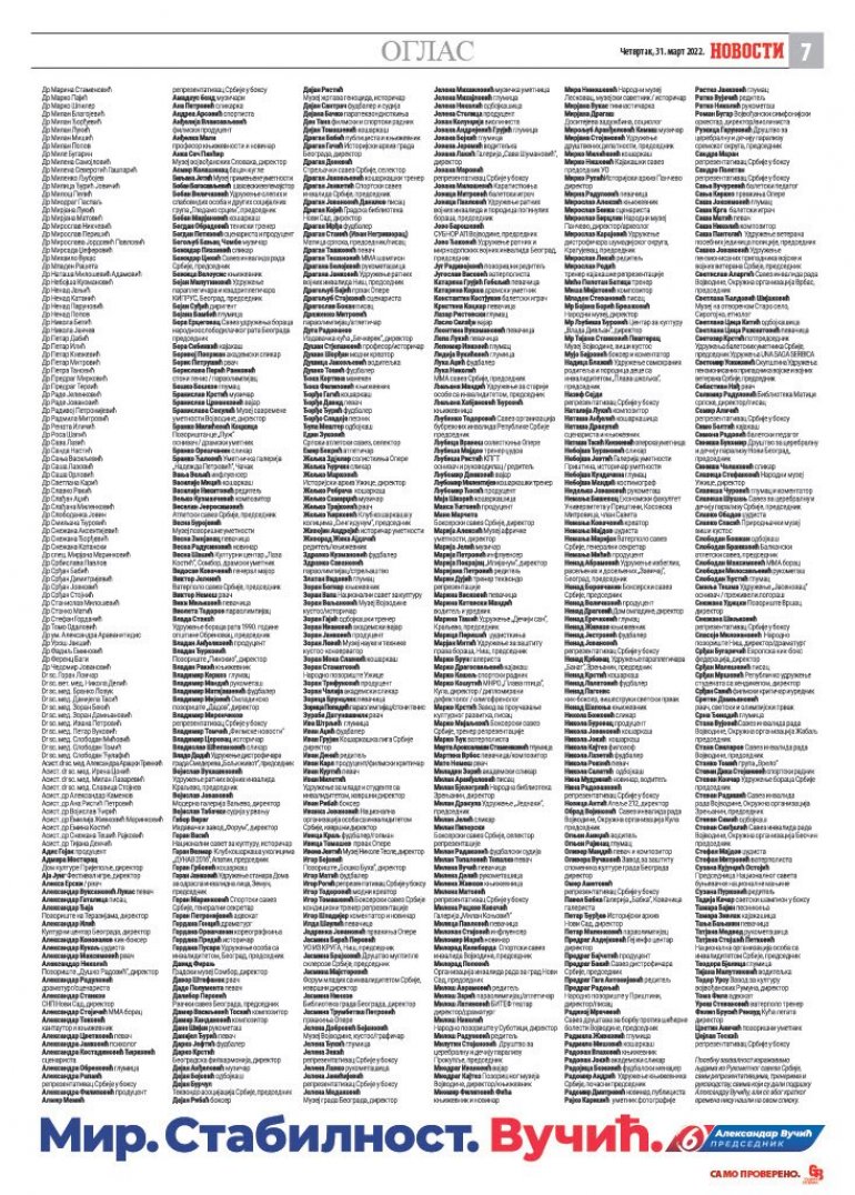 СПИСАК СВИХ 1.000 ПОЗНАТИХ КОЈИ СУ ПОДРЖАЛИ ВУЧИЋА: "Дајемо свој глас за будућност и оне који долазе после нас"