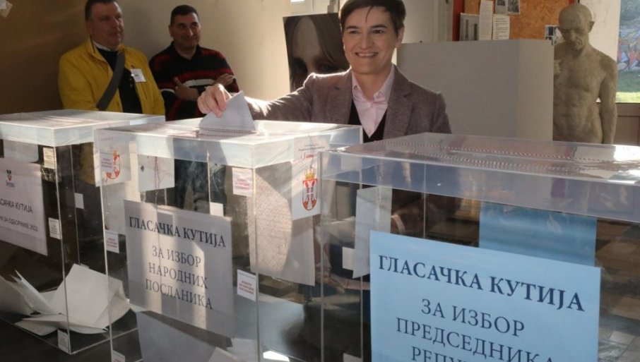 ПРЕМИЈЕРКА и функционерка Српске напредне странке Ана Брнабић гласала је јутрос на бирачком месту број 34 у Школи за дизајин, на београдској општини Савски венац.