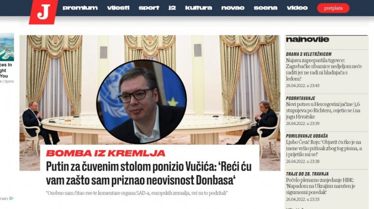 Иако се зна да је тадашњи шеф дипломатије, а садашњи лидер опозиционе Народне странке Вук Јеремић поставио своје чувено питање пред МСП о проглашењу независности Косова, то порталима у Загребу и Сарајеву није сметало да у један глас "закључе" како је "Путин за чувеним столом понизио Вучића", иако шеф државе данас није био у Кремљу, нити је 2010. учествовао у правном аутоголу наше стране пред судијама Међународног суда правде.