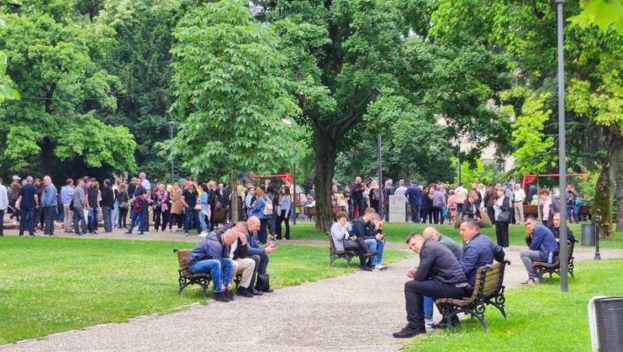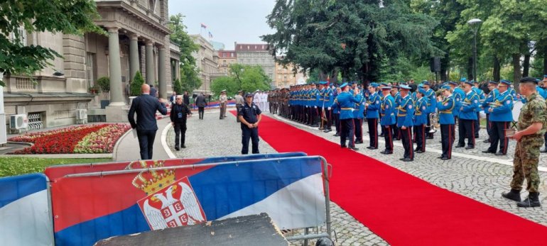 Велики број људи налази се у Пионирском парку, али и испред Скупштине, док га на улазу чека Гарда Војске Србије.