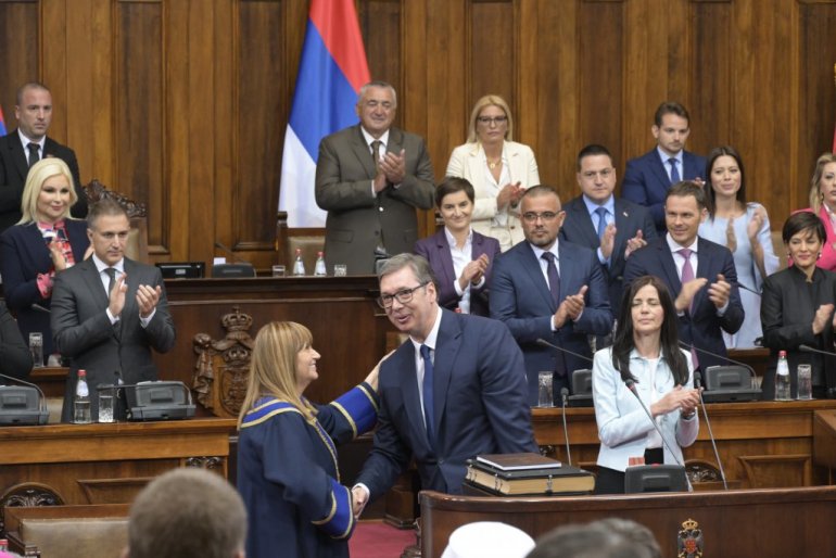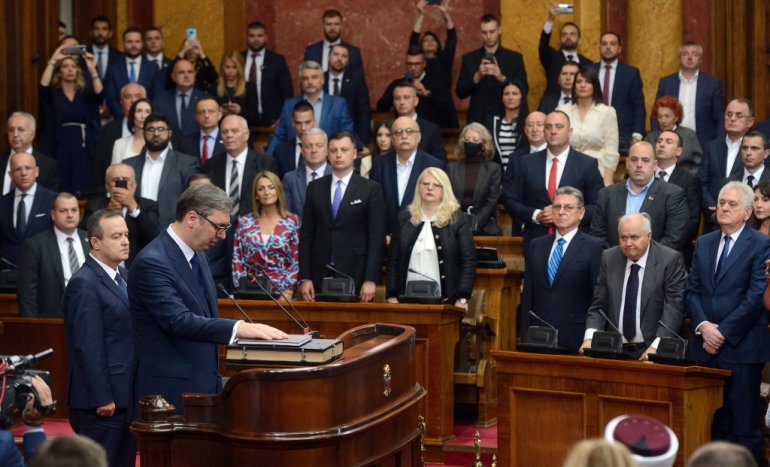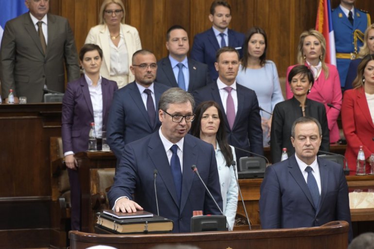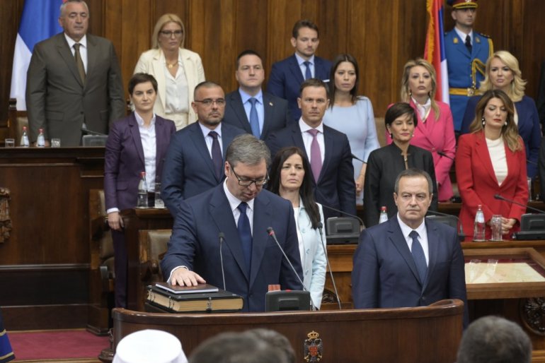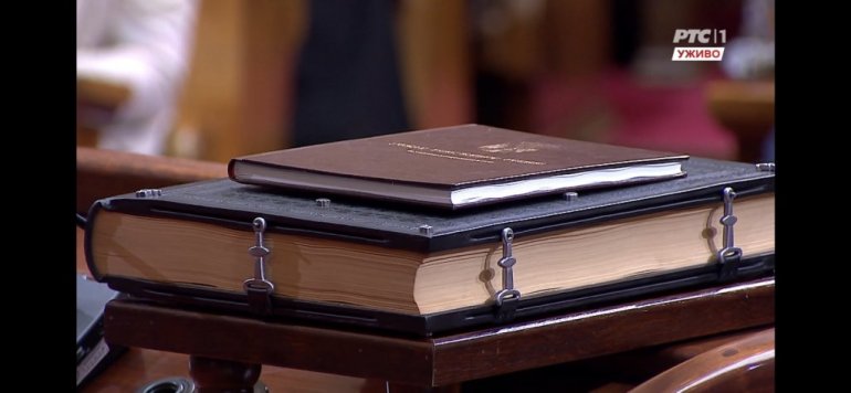 - Заклињем се да ћу све своје снаге посветити очувању суверености и целине територије Републике Србије, укључујући и Косово и Метохију као њен саставни део, као и остваривању људских и мањинских права и слобода, поштовању и одбрани Устава и закона, очувању мира и благостања свих грађана Републике Србије и да ћу савесно и одговорно испуњавати све своје дужности.