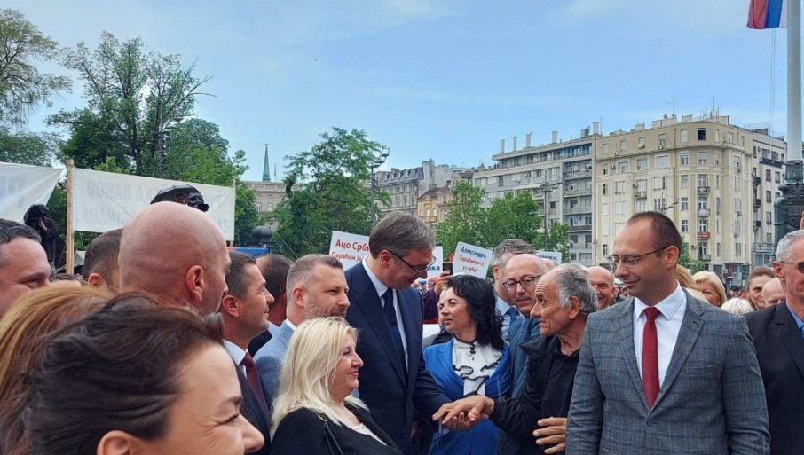 Он се поздравио и са Србима са КиМ, који су данас дошли у Београд како би пружили подршку председнику.