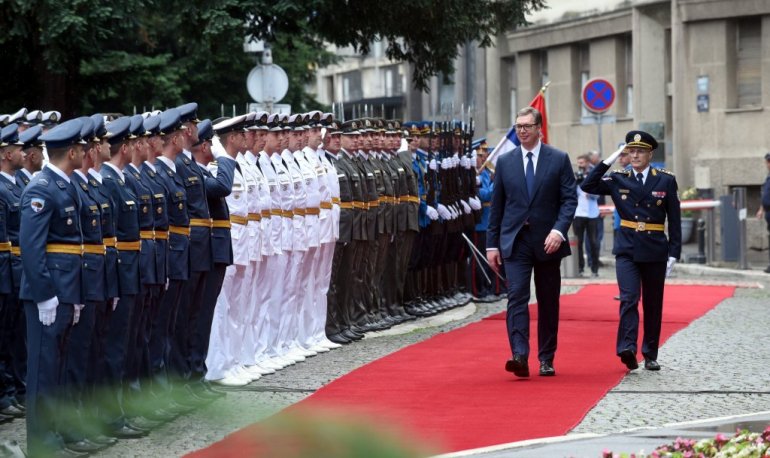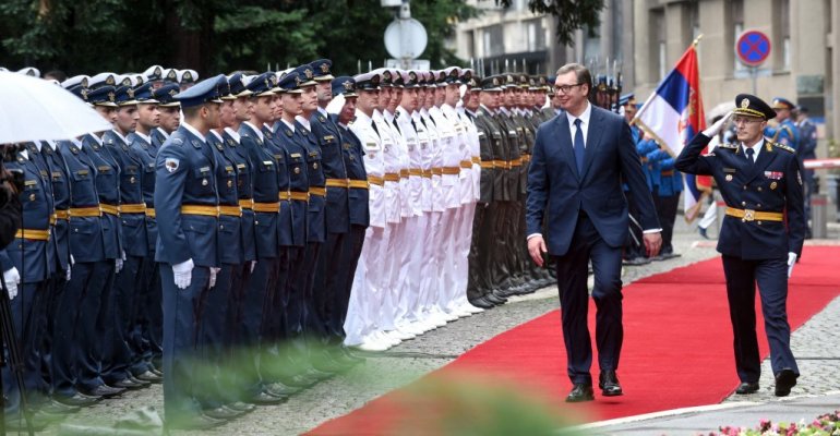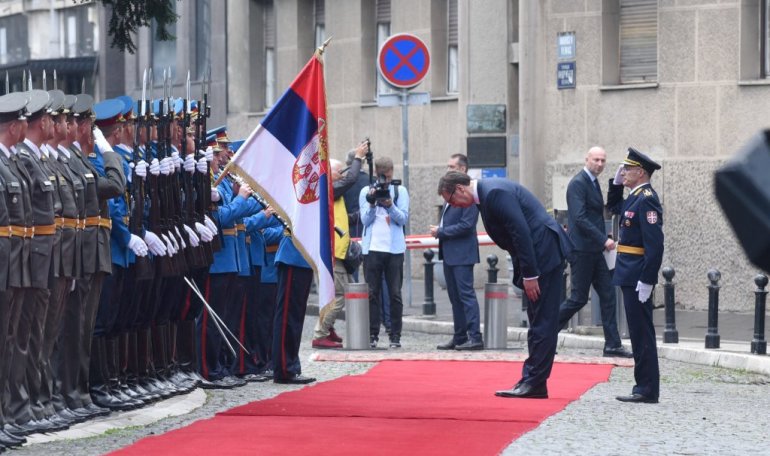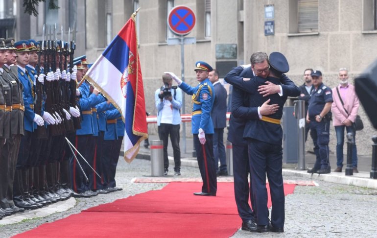 - Молим вас да ревносно и одговорно обављате дужност. Хвала на свему што се радили претходних пет година. Сада долази тежих пет година, није лако чувати мир и стабилност, али уз овакве војнике и свесне грађане, који знају да нема веће вредности од чувања слободе, уверен сам да ћемо мир, стабилност и слободу сачувати. Нека живи Војска Србије - поручио је председник Вучић, који је затим ушао у здање на Андрићевом венцу.