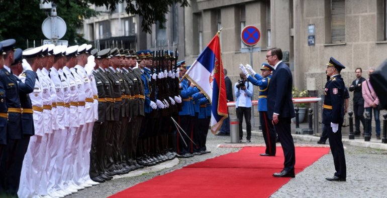 Испред зграде Председништва била је постављена Гарда Војске Србије, као и представници свих родова српске армије, а начелник Генералштаба ВС генерал Милан Мојсиловић предао је рапорт председнику Вучићу.