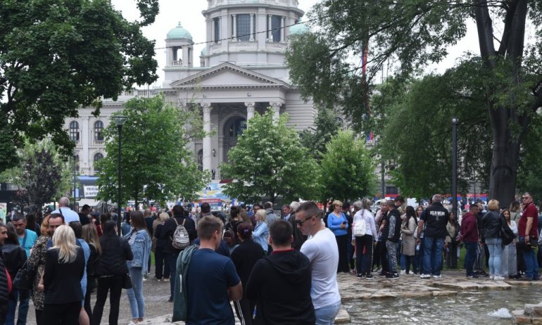 СРБИ СА КИМ УЗ СВОГ ПРЕДСЕДНИКА: Развили велики транспарент испред Скупштине (ФОТО)