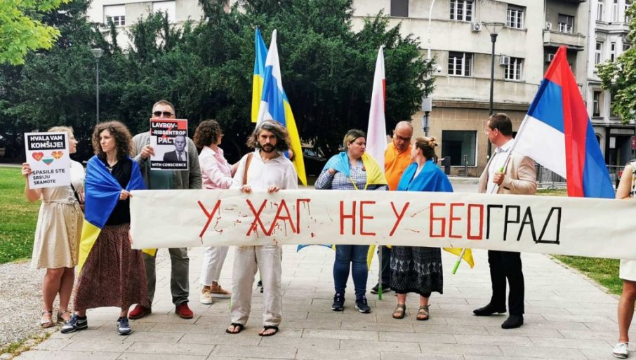 ПРОУКРАЈИНСКЕ организације у Србији, иза којих стоје поједине западне амбасаде и структуре НАТО-а, одржале су протест данас испред Председништва, на коме се окупило свега девет демонстраната.