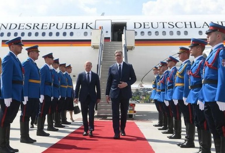 Авион канцелара Шолца слетео је на Аеродром "Никола Тесла" нешто после 15 часова. Шолца је на аеродрому дочекао председник Александар Вучић.