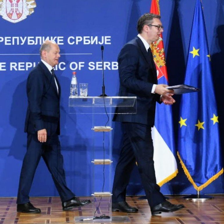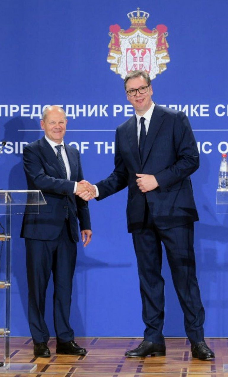 - Али много више од свега тога верујем у све оно што је причао канцелар Шолц, о ширењу ЕУ. Верујем у његову одговорност, озбиљност и посвећеност. А ми ћемо дати много више од себе него до сада, да наши немачки партнери буду задовољни нама. Борићемо се да дијалог са Приштином напредује, и да владавина права напредује брже. А ви ако сте задовољни покажите то, ако не будете задовољни опет нам то реците. Могли сте и до сада без Србије, вас да боли не може ништа, може само нас. Тако да је на нама да урадимо што више ствари.
