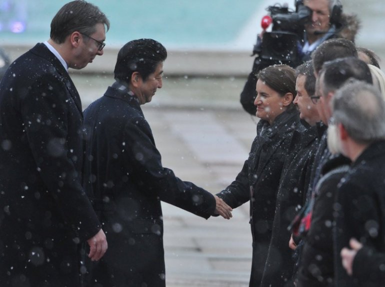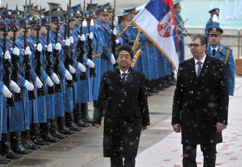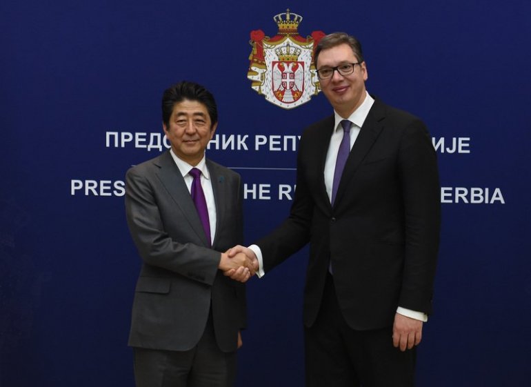 Абе је на заједничкој конференцији за новинаре са Вучићем рекао да је Србија кључна држава за стабилност Западног Балкана, који има важну геополитичку позицију.