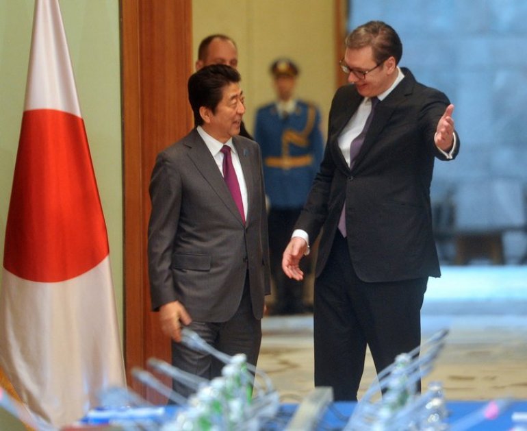 Председник Вучић је тада истакао да посету премијера Јапана сматра историјском прекретницом од кључног значаја за даљи развој и унапређење односа Србије и Јапана, изразивши велику част и задовољство због прве посете јапанског премијера после 31 године.