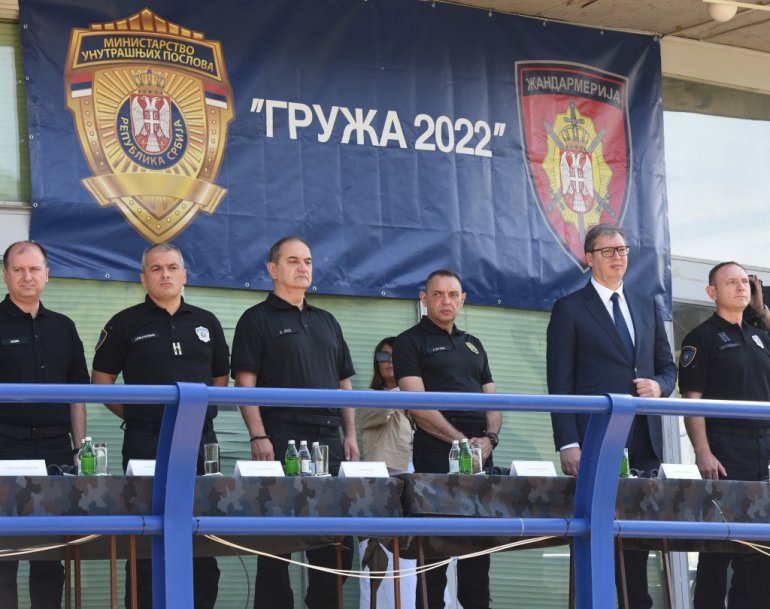 НА брани на језеру Гружа завршена је показно-тактичка вежба Министарства унутрашњих послова "Гружа 2022", којој присуствује председник Србије Александар Вучић.