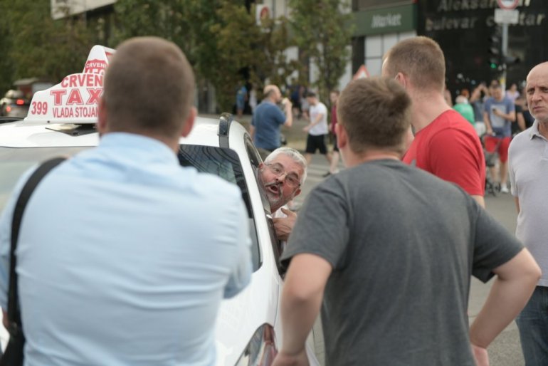 Демонстранти су на самом почетку протеста покушали да изазову избијање првог инцидента када је један од демонстраната изазивао једног од возача, који се мирно вратио у свој аутомобил.