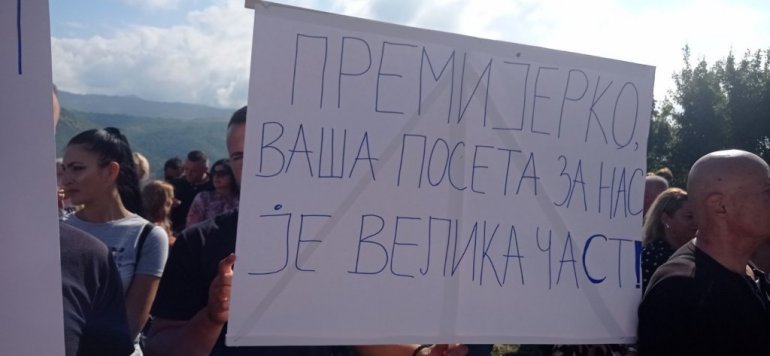 Испред нове куће Лазара и Божидара Радосављевића у Лепосавићу окупио се велики број људи, који носе транспаренте: "Косово и Метохија су Србија", "Премијерко ваша посета за нас је велика част", "Срби са Косова Метохије увек уз своју државу"...