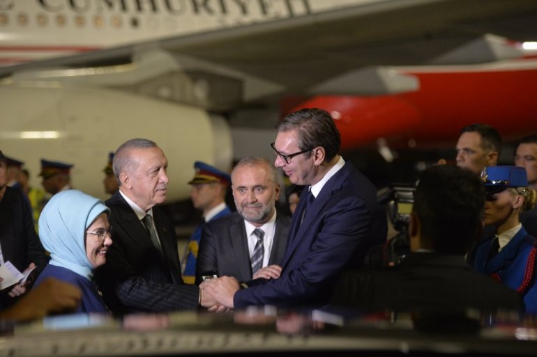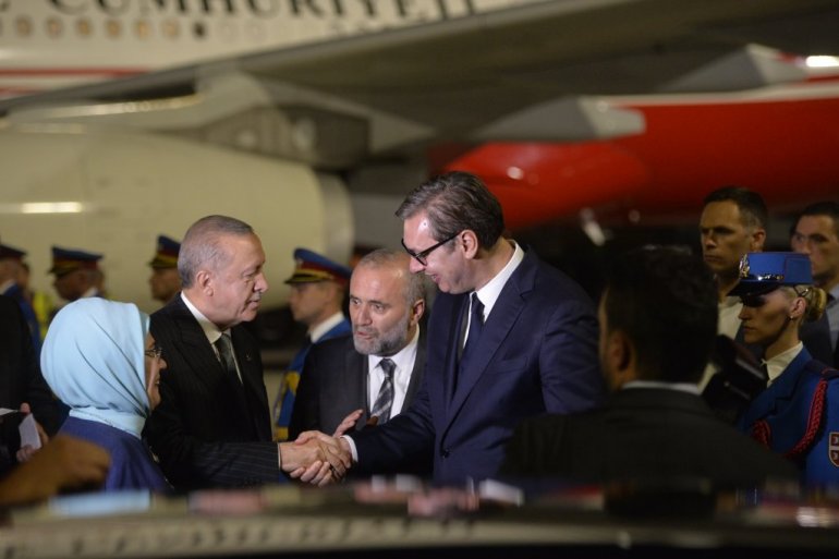 Председник Турске, Реџеп Тајип Ердоган слетео је на београдски аеродром "Никола Тесла", чиме је започета његова посета Србији.