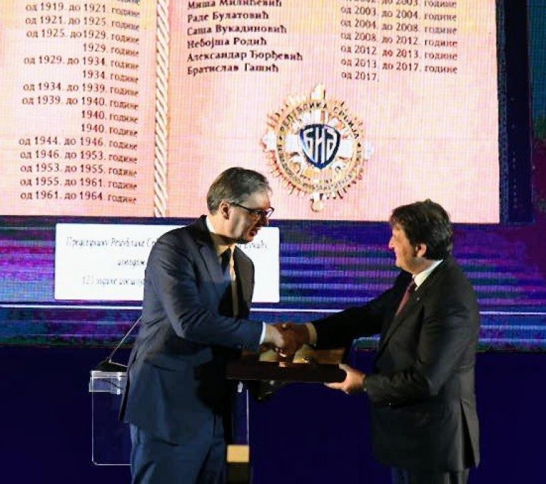 Директор БИА Братислав Гашић је потом председнику уручио посебну јубиларну плакету са именима свих руководилаца српске безбедносне службе од њеног оснивања 1869. године до данас.
