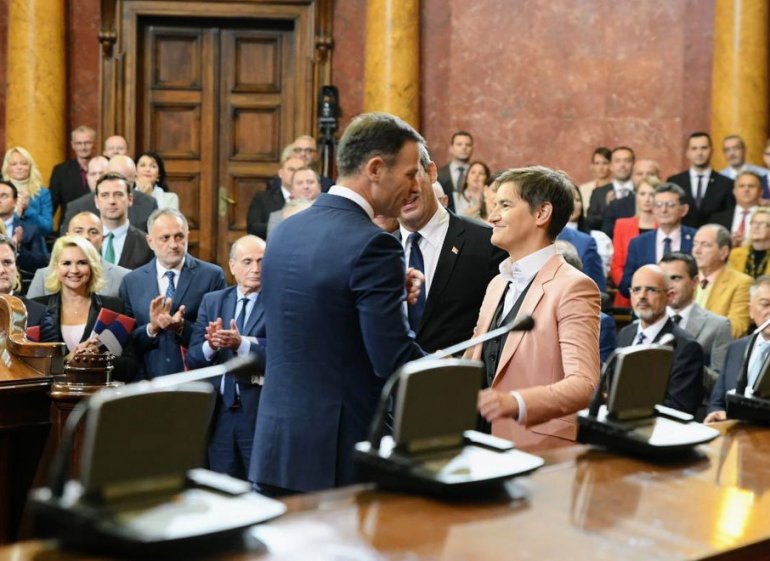 - Ово је Влада која ће радити на томе да Србија настави да напредује и побеђује. Ми смо један тим у којем неће бити дисонантних тонова. Нову Владу карактеришу две ствари - да је просрпска и да је влада континуитета. У овако тешким временима Србија мора да има само искључиво просрпску владу. Морамо да чувамо Србију која самостално одлучује, која се не плаши да брани принципијелне ставове у складу са интересима грађана и са међународним правом, која је на европском путу, али гради партнерства и са другим земљама. Морамо да нађемо простор да испунимо обећање да до краја мандата просечна плата буде 1.000 евра, а просечна пензија 500 евра - истакла је Брнабићева у завршној речи, пре гласања и полагања заклетве.