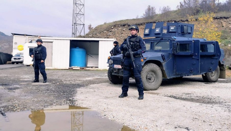 У бази полиције такозваног Косова, коју су пре пар месеци ојачали бетонским зидовима,  приметно је више наоружаних косовских полицајаца РОСУ и њихових оклопних возила, док је једно возило стационирано надомак пункта, а покрај њега је такође више припадника РОСУ са дугим цевима.