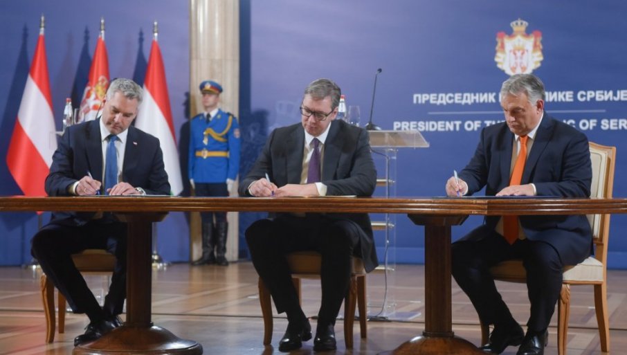 ПРЕДСЕДНИК Александар Вучић домаћин је другог трилатералног Самита Мађарске, Србије и Аустрије, на коме учествују и мађарски премијер Виктор Орбан и аустријски канцелар Карл Нехамер.
