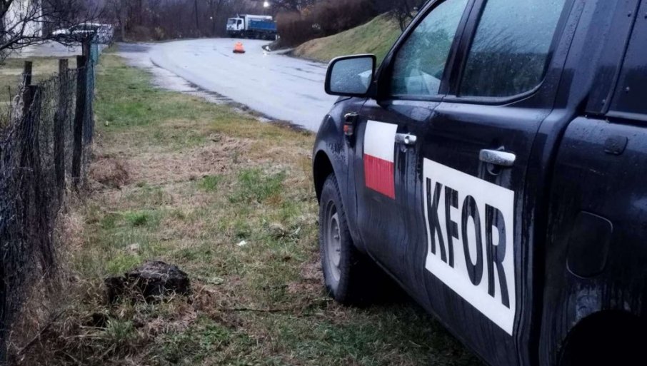 Недалеко од барикада налази се неколико возила пољског КФОР-а.