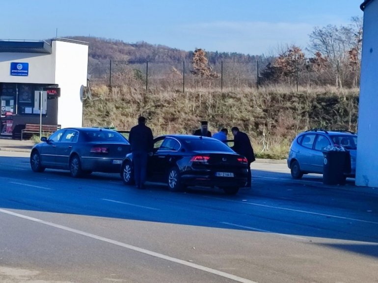 Патријарх се у аутомобилу неколико минута задржао на страни коју контролише косовска полиција, затим се окренуо и вратио назад ка Куршумлији.
