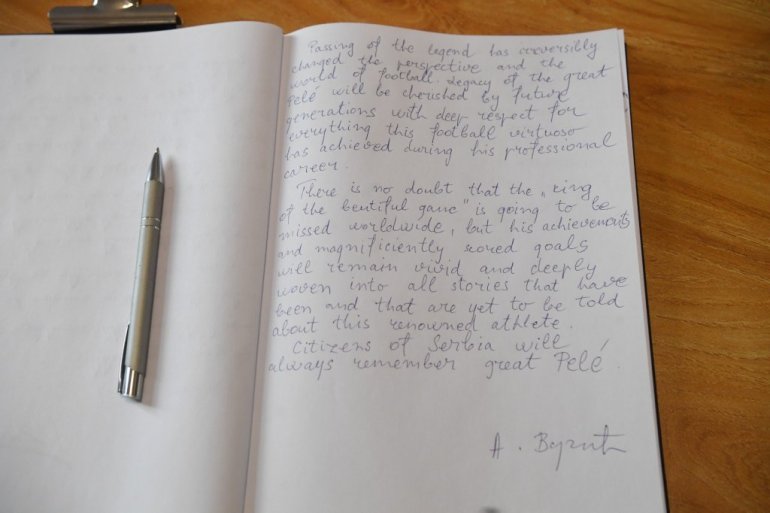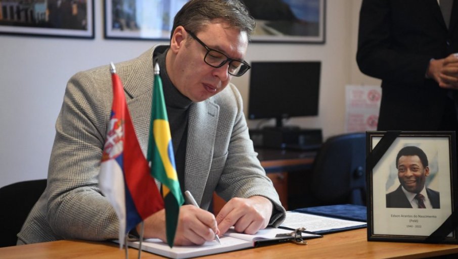 ПРЕДСЕДНИК Републике Србије Александар Вучић уписао се у књигу жалости у амбасади Федеративне Републике Бразил поводом смрти легендарног фудбалера Пелеа.