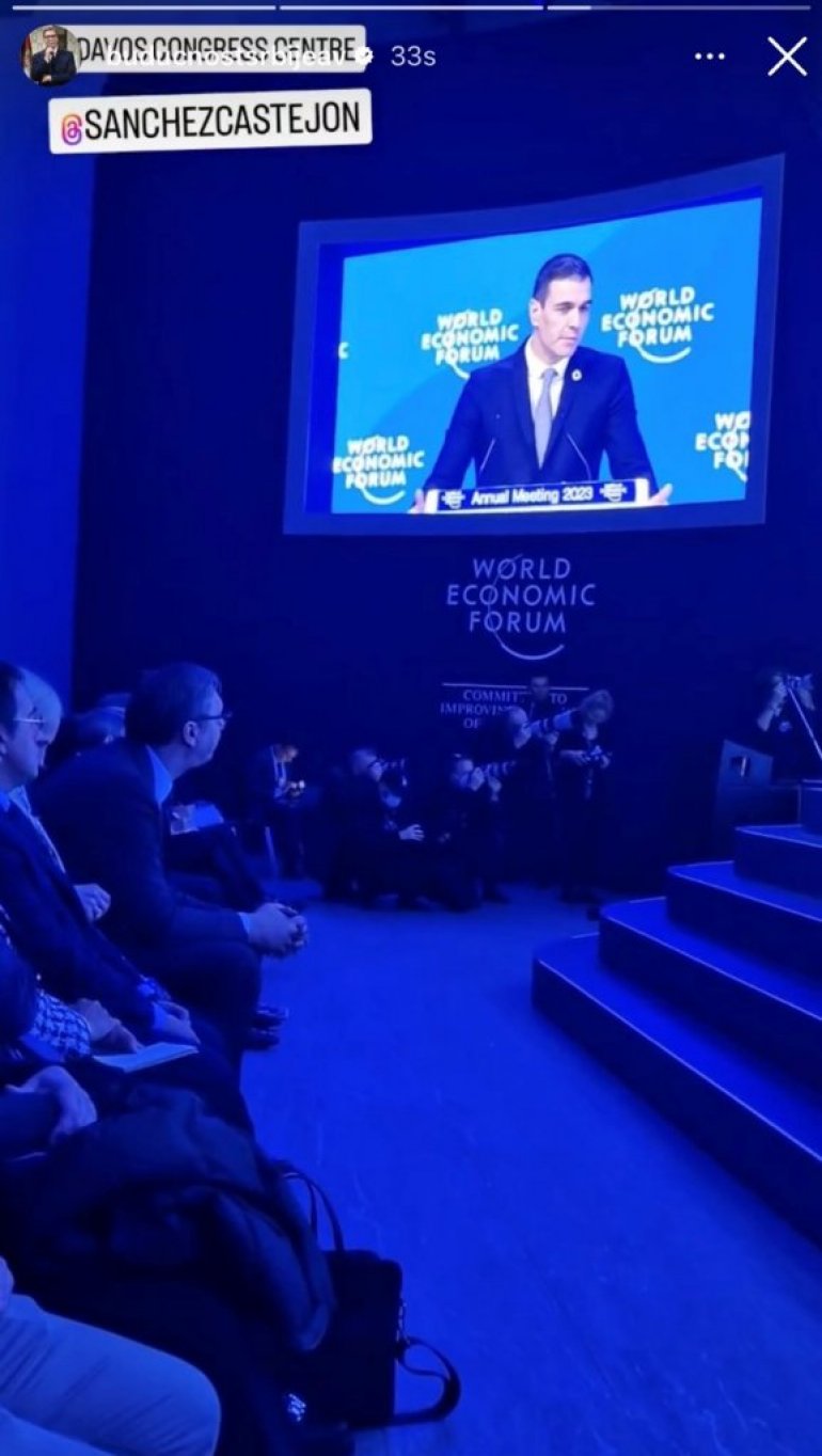 - Увек значајан сусрет са великим пријатељем Педром Санчезом након његовог излагања на Светском економском форуму и одлична прилика за размену мишљења о темама овогодишњег форума. Радујем се економским успесима Шпаније, о којима је говорио Педро Санчез, и настављамо да јачамо односе Србије и Шпаније - поручио је Вучић на свом Инстаграм налогу.