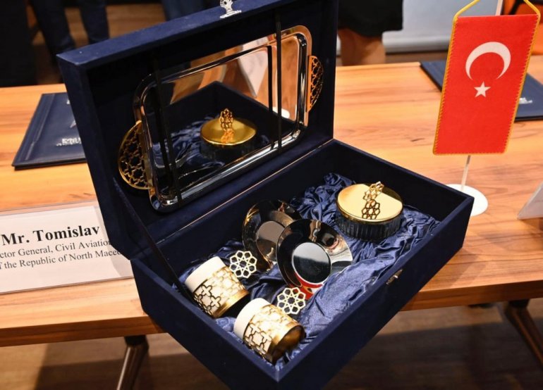 МИНИСТАР грађевинарства, саобраћаја и инфраструктуре Горан Весић угостио је Кемала Јуксека, директора турског Генералног директората цивилног ваздухопловства, који му је донео традиционални поклон - шољице за турску кафу.