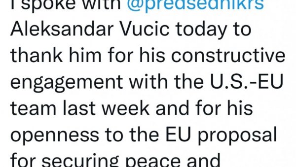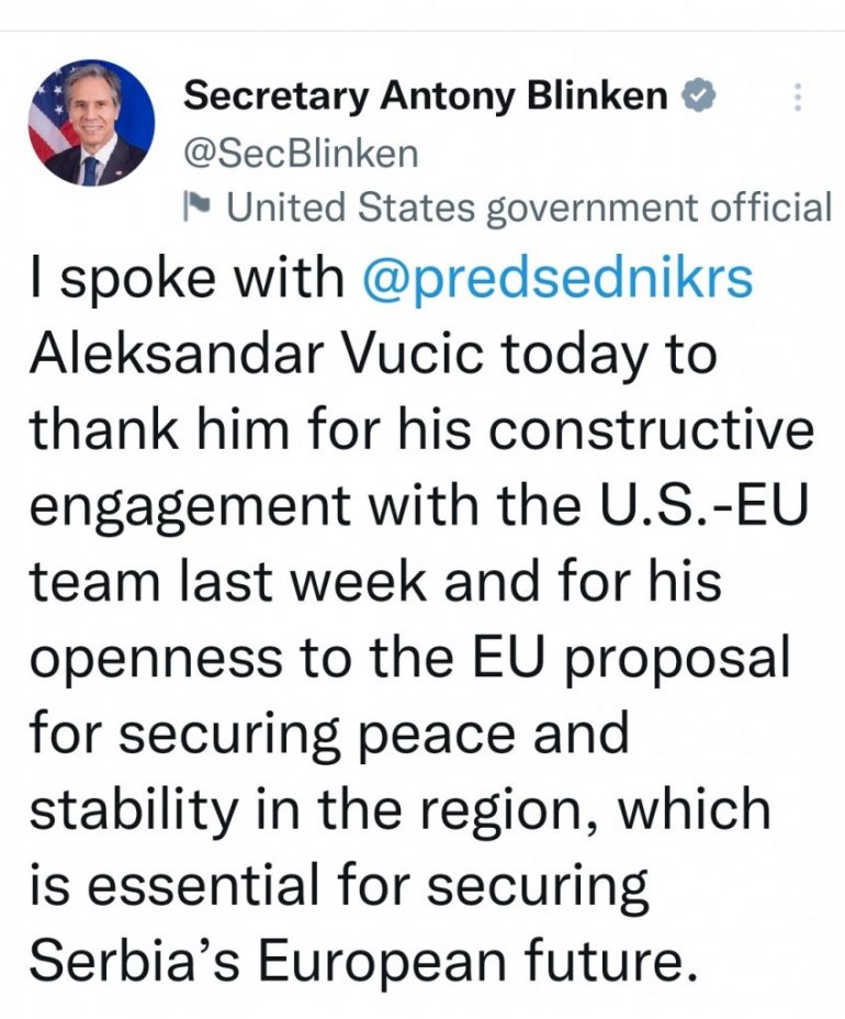 БЛИНКЕН ЗАХВАЛИО ВУЧИЋУ: Амерички државни секретар поставио статус на Твитеру