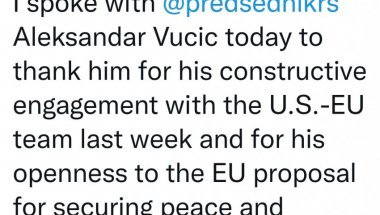 АМЕРИЧКИ државни секретар Ентони Блинкен огласио се на свом Твитер налогу поводом телефонског разговора који је синоћ имао са председником Србије Александром Вучићем.