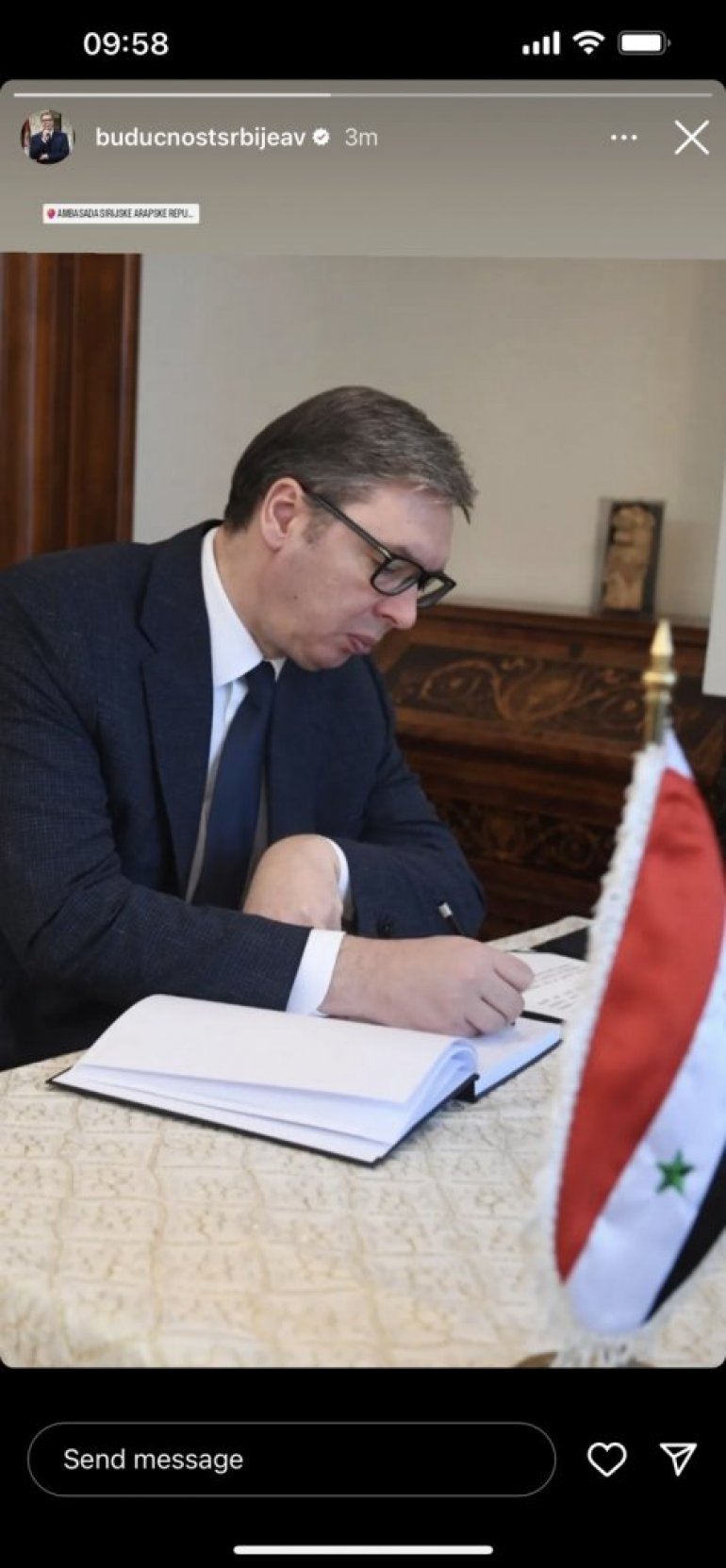 "ДЕЛИМО БОЛ СА ГРАЂАНИМА СИРИЈЕ У НАДИ ДА ЋЕ ПРОНАЋИ СНАГЕ ЗА НОВИ ПОЧЕТАК" Председник Вучић се уписао у књигу жалости (ФОТО)