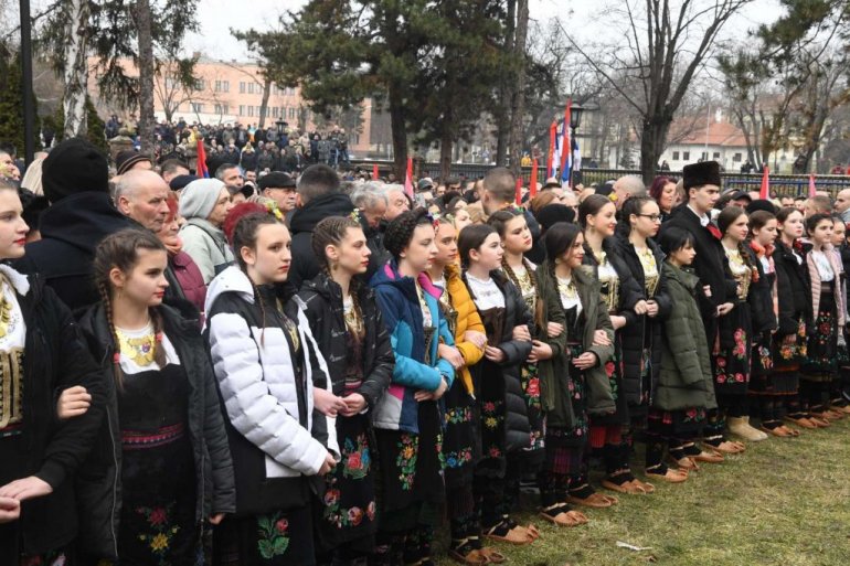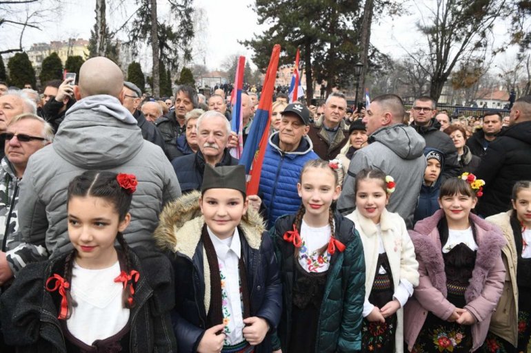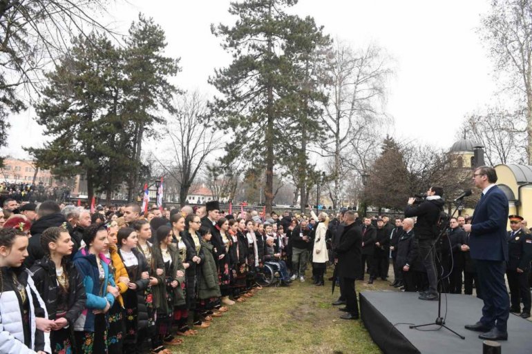 - Хвала свима што сте данас у Крагујевцу, родном месту српске државности. Сретење је за нас црвено слово, много тога смо започели и урадили на овај датум. Лична храброст Крађорђевих устаника није била ништа мања од Спартанаца. На данашњи дан одржан је збор, величанствена победа на Иванковцу...Од 1805. почиње јавно декларисани рат против Османског царства. Вековима и пре Милоша није нам мањкало храбрости. Наш успех везан за Милошев ген. На Сретење је усвојен први модерни устав. Димитрије Давидовић написао је први Устав. Устав јасно предвиђа да сваки Србин једнак. Милош овим ствара повољну климу за долазак учених Срба. Ми Срби немамо права да се пред сенима предака не присетимо колику смо жртву поднели на олтар отаџбине - истакао је председник Вучић.