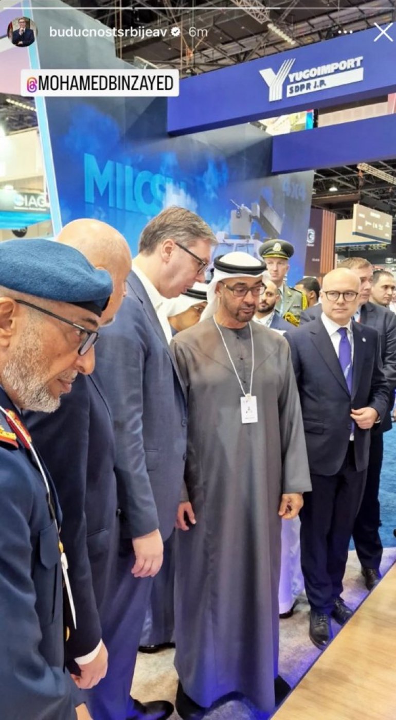 ЊЕГОВО Височанство шеик Мухамед бин Зајед ел Нахјан, председник УАЕ, посетио је штанд Србије у оквиру шеснаестог по реду Међународног сајма војног наоружања и опреме "IDEX 2023" у Абу Дабију.