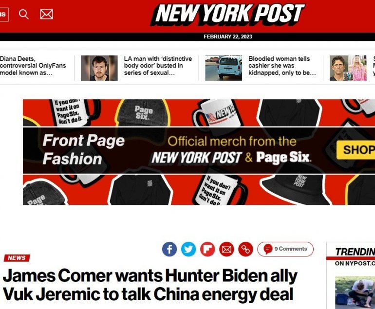 - Јеремићево претходно сведочење о пословним односима са званичницима који су учествовали у међународним корупционашким аферама нас упозорава да можда постоје докази који показују да су породица Бајден и њихови сарадници продавали утицај, укључујући и појединцима повезаним са Комунистичком партијом Кине - рекао је Комер.