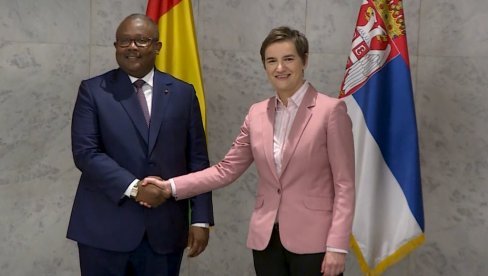 ПРЕДСЕДНИЦА Владе Ана Брнабић истакла је данас, у разговору с председником Гвинеје Бисао у Београду о билатералним односима и економској сарадњи, да је Србија поносна на вишедеценијску историју одличних односа, као и да је неопходно радити на њиховом унапређењу у свим областима, имајући у виду недовољно искоришћене потенцијале.